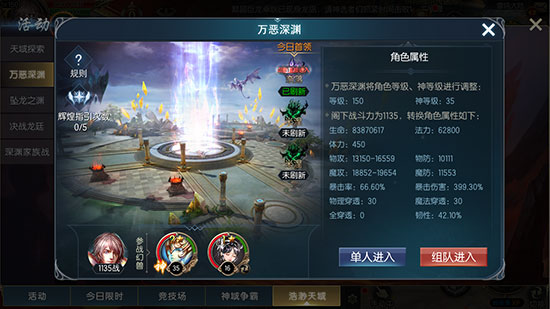 受深渊“龙廷威压”环境影响,神选者与幻兽的伤害将受到一定比例的动态调整。