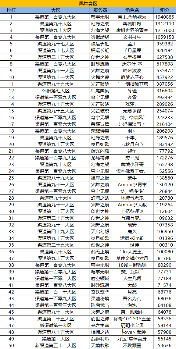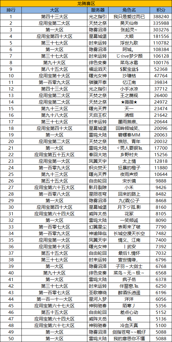 天马骏驰养宠赛已于3月18日落下帷幕!现公布各版本排行榜TOP50的名单,内容如下: