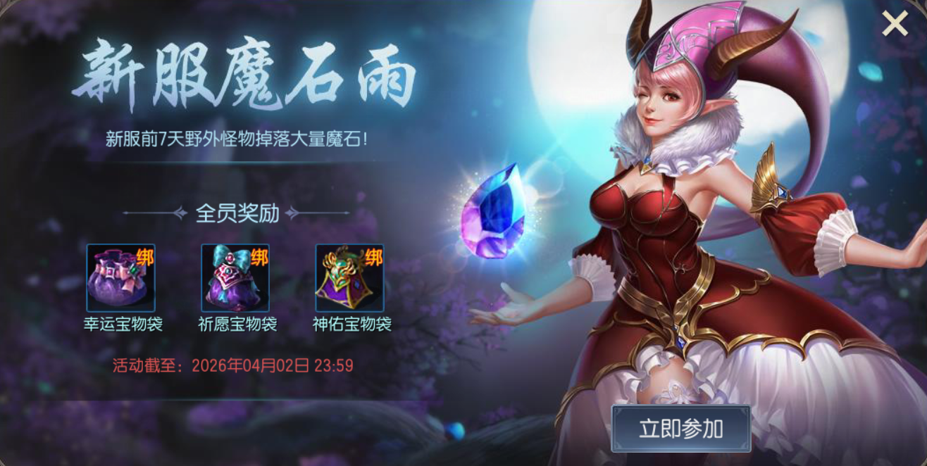 请注意,新服魔石雨活动时间有限,各位神选者务必抓紧时间,前往野外刷怪,薅尽每一份福利,为后续征战打下坚实基础!