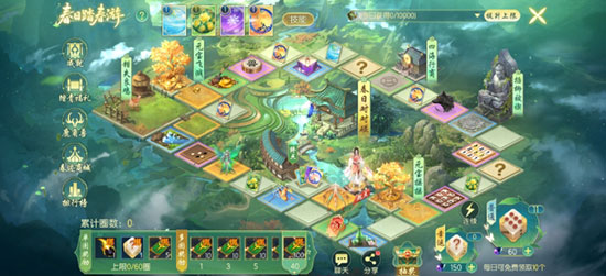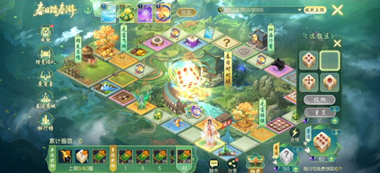 投掷踏青骰或玲珑骰,开启踏青之旅,方格藏惊喜,绕行赢奖励。还有各类旅途事件,达成事件成就目标,即可获得相应成就奖励,各稀有成就首次达成时,将获得相应“踏青牌”技能。