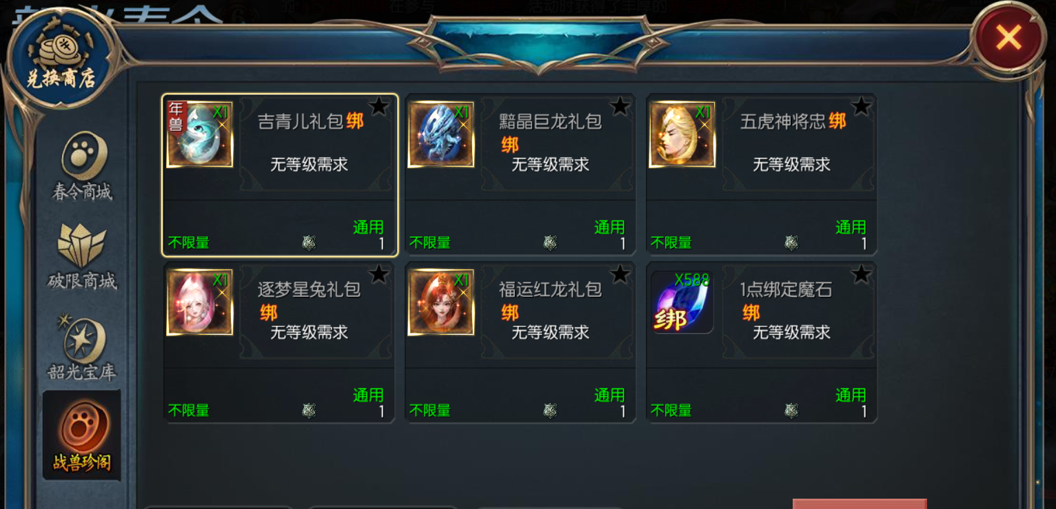 【重磅福利】免费兑年兽礼包,战力狂飙不是梦