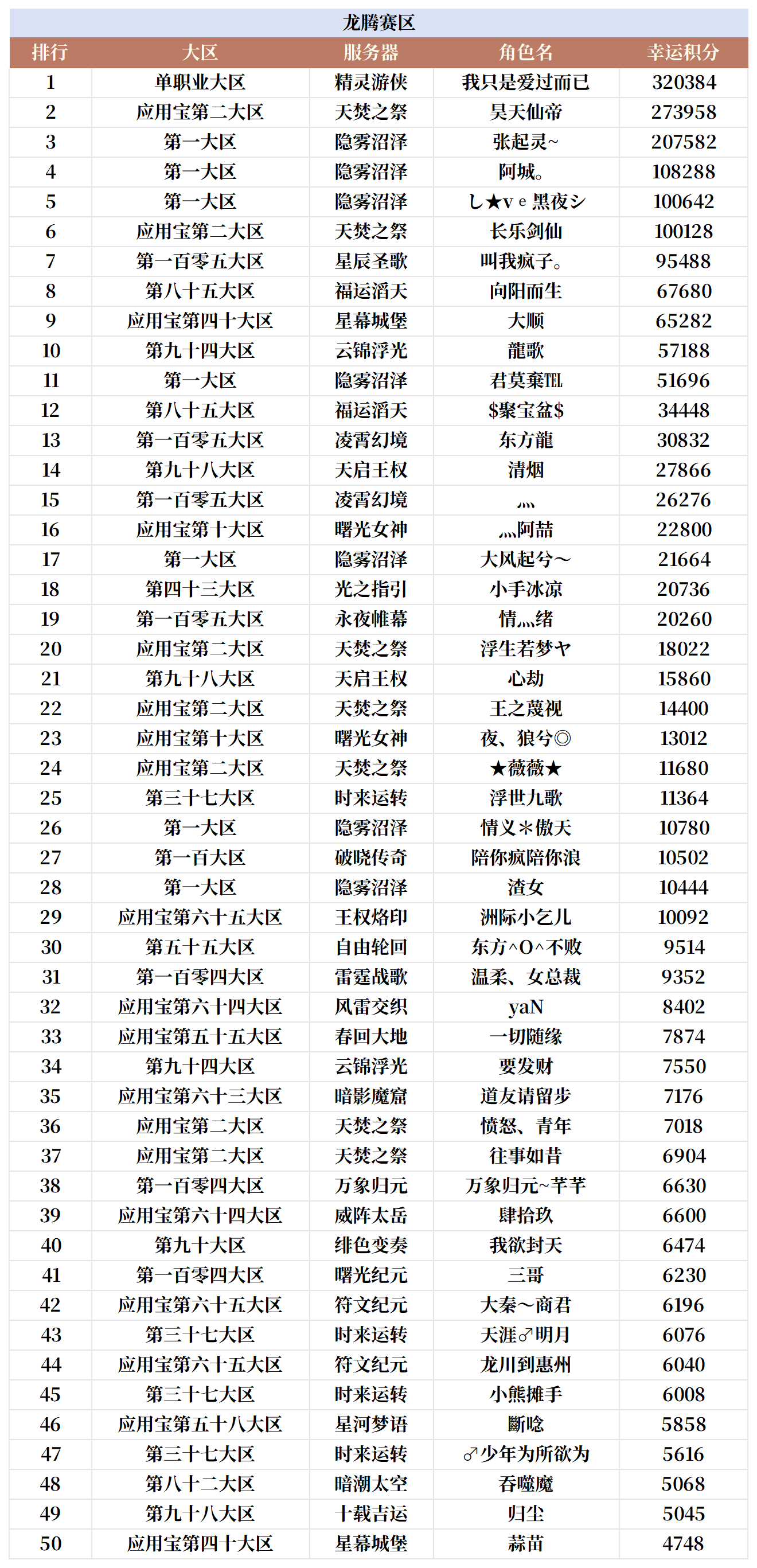 恭喜以上获奖的神选者!10月14日-10月15日23:59为排行榜活动公示期,若神选者对名单存在异议请于公示期内联系客服反馈,确有异常官方将更新名单后重新进行公示,并顺延发奖时间;超过公示期未反馈则视为无异议,后续不再进行处理。