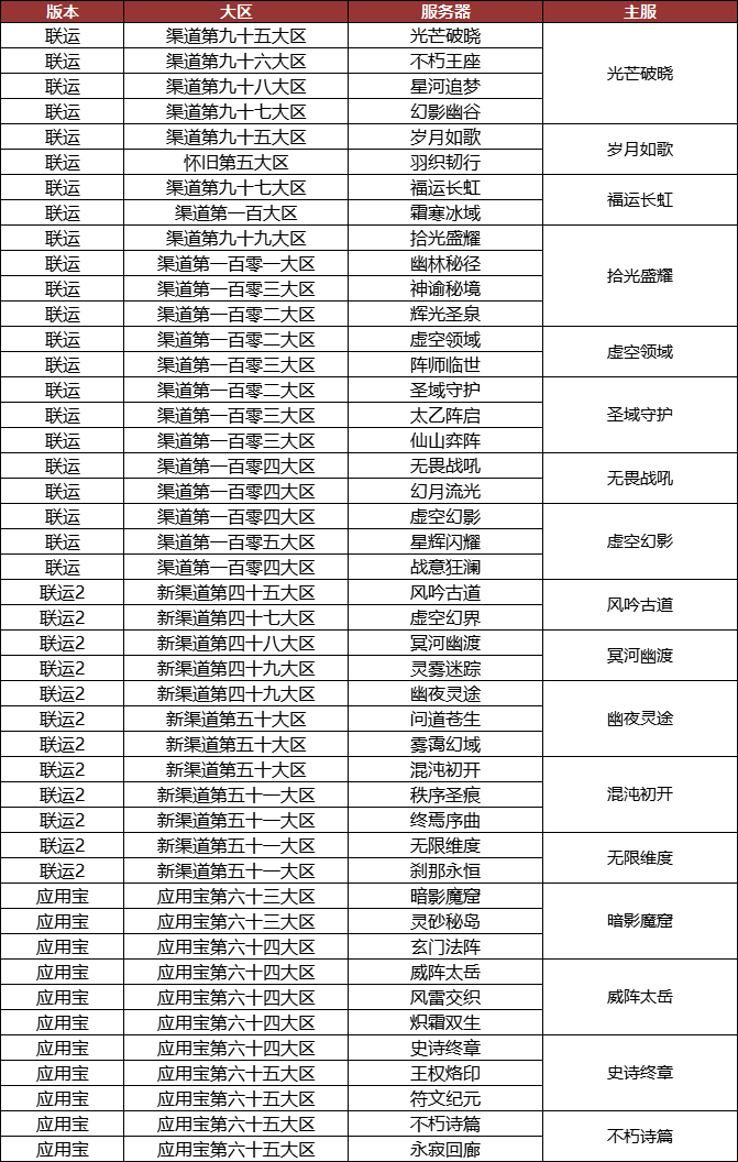 具体互通的大区服务器列表如下: